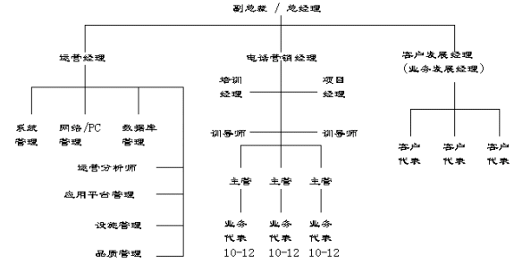 在呼叫中心的組織結(jié)構(gòu)及職能分工上,外包型呼叫中心與企業(yè)自建型呼叫中心有很多共同點(diǎn),它們間主要的區(qū)別在于外包型呼叫中心分工更細(xì),而且有很多專門人員,而企業(yè)自建型呼叫中主的很多職能是由一人兼任或借助其它部門的支持和服務(wù)。從一個(gè)典型的外包型呼叫中心的組織結(jié)構(gòu)來看,通常會設(shè)置如下一些組織單位: