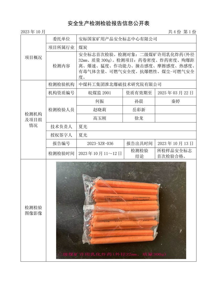 安全生產(chǎn)檢測檢驗(yàn)報(bào)告信息公開表(2023年10月份)