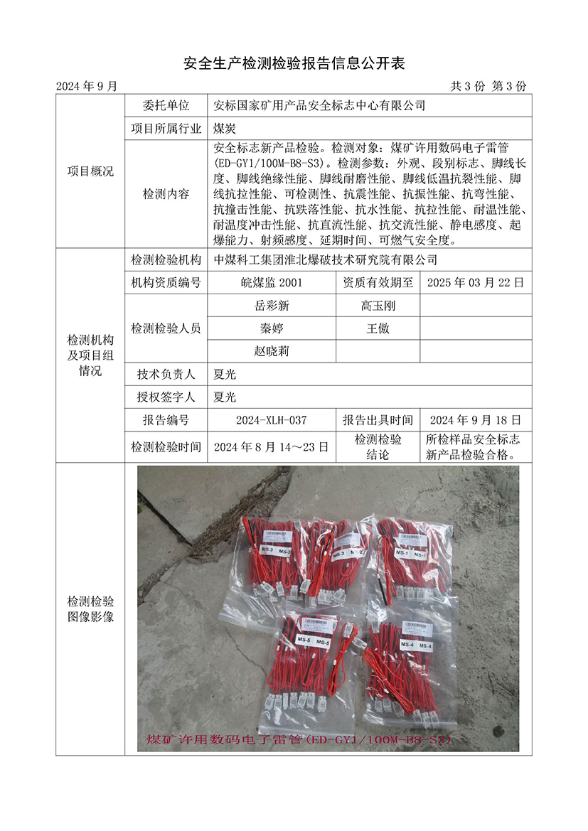 安全生產(chǎn)檢測檢驗報告信息公開表(2024年9月份)