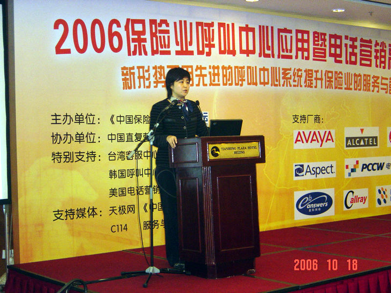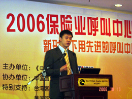 。。2006年10月18日,2006保險業(yè)呼叫中心應用暨電話營銷高峰研討會在北京天鴻科園大酒店隆重召開,以下是大會主題演講的相關(guān)圖片報道: