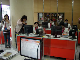 2007年4月17日,2007中國呼叫中心及企業(yè)通信大會(huì)組織了呼叫中心實(shí)地觀摩,第一參觀路線為交通銀行總行客服中心和上海易方呼叫中心(外包型),第二參觀路線為上海外事熱線和800 TeleServices(飛翱),以下是相關(guān)圖片報(bào)道:
