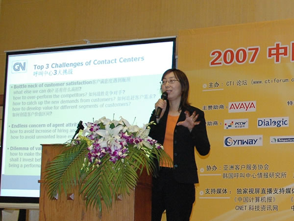 2007年4月18日至20日,2007中國呼叫中心及企業(yè)通信大會(huì)在上海光大會(huì)展中心國際大酒店隆重召開,會(huì)議將展開三十多場精彩紛呈的演講,邀請(qǐng)了上海移動(dòng)客戶服務(wù)中心總經(jīng)理呂留芳女士、亞太頂級(jí)呼叫中心運(yùn)營專家 Simon Kriss先生、北郵CTI中心副主任王曉暉先生等一批業(yè)界知名專家在會(huì)上發(fā)表演說,以下是相關(guān)圖片報(bào)道: