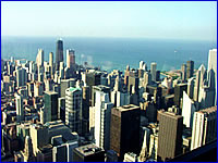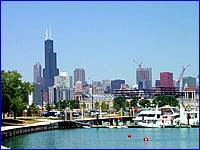 芝加哥并不是一個旅游城市,人口也只有200多萬。如果說觀光景點的話,就只有位于城市中心由近40多座高樓組成的摩天大樓群,高聳入云的高樓一座連著一座,使得芝加哥整個城市看上去象是鋼筋水泥構(gòu)成的森林,充滿了大都市的氣魄。其中的西爾斯大廈(Sears Tower),在紐約的世貿(mào)大廈毀于恐怖事件之后,成為全美最高建筑。