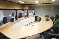 10月24日,在思科公司位于香港灣仔鷹君大廈的一間會(huì)議室,包括思科CEO錢伯斯在內(nèi)的六名高管已經(jīng)“坐”在橢圓型的會(huì)議桌一側(cè)!癏i!”隨著錢伯斯的一聲招呼,會(huì)議室內(nèi)的人這才發(fā)現(xiàn),正在講話的“錢伯斯”是在三塊連接起來的等離子屏幕上,而此刻他真實(shí)的位置是在思科位于美國(guó)硅谷的總部。65英寸的1080P高清晰屏幕上,錢伯斯等人的影像如真人大小,加上三塊屏幕被設(shè)計(jì)成會(huì)議桌的另外一半,讓人誤以為錢伯斯真的來到了香港。