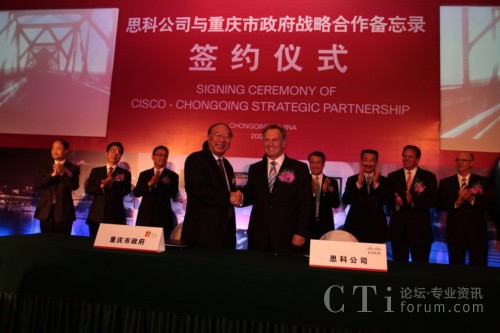 CTI論壇(ctiforum)9月14日消息:2009年9月11日,重慶市人民政府與思科正式簽訂合作備忘錄,雙方將結(jié)為戰(zhàn)略合作伙伴關(guān)系,就通信產(chǎn)品制造、“智能+互聯(lián)城市”試點示范、綠色技術(shù)研發(fā)與創(chuàng)新及風險投資等多方面展開深入合作。此次合作將進一步加快重慶市產(chǎn)業(yè)結(jié)構(gòu)和產(chǎn)品結(jié)構(gòu)調(diào)整,促進內(nèi)陸開放城市建設(shè);加快發(fā)展重慶通信產(chǎn)品產(chǎn)業(yè)集群,把重慶建設(shè)成為西部重要的現(xiàn)代通信產(chǎn)品制造基地;推動以信息產(chǎn)業(yè)為主體的重慶高新技術(shù)產(chǎn)業(yè)發(fā)展以及本土創(chuàng)新和可持續(xù)性能力的提供,更高效便捷地加快本土企業(yè)的國際化進程;整合多方國際資源,以推進重慶在中國率先成為“智能+互聯(lián)城市”,讓市民享受更多的工作和生活便利及實惠。作為思科在華創(chuàng)新及可持續(xù)發(fā)展戰(zhàn)略實施的又一里程碑,此次合作不僅是思科“智能+互聯(lián)城市”計劃在中國與當?shù)卣氖锥群献黜椖浚彩撬伎圃凇皡f(xié)作型創(chuàng)新模式”指導下激勵本土創(chuàng)新的全新實踐。
