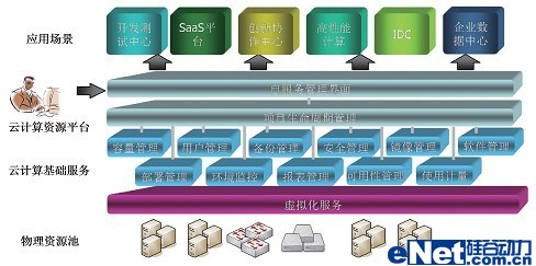 該解決方案可以對企業(yè)現(xiàn)有的基礎架構進行整合,通過虛擬化技術和自動化技術,構建企業(yè)自己擁有的云計算中心,實現(xiàn)企業(yè)硬件資源和軟件資源的統(tǒng)一管理、統(tǒng)一分配、統(tǒng)一部署、統(tǒng)一監(jiān)控和統(tǒng)一備份,打破應用對資源的獨占,從而幫助企業(yè)實現(xiàn)云計算理念。