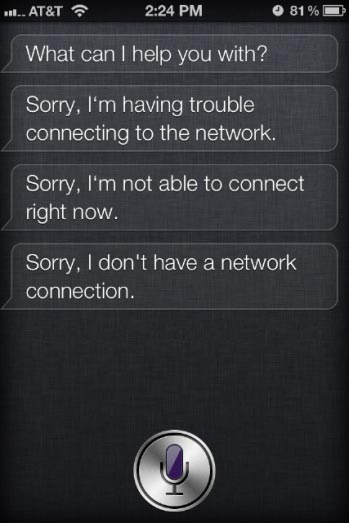 Siri不只是一個(gè)簡(jiǎn)單的語(yǔ)音控制軟件。為了能夠正常運(yùn)行,它必須連接到蘋(píng)果公司的服務(wù)器去獲取其他信息。例如,當(dāng)用戶(hù)詢(xún)問(wèn)Siri田納西州納什維爾市的天氣情況時(shí),它必須與擁有此類(lèi)信息的主數(shù)據(jù)庫(kù)進(jìn)行通信,然后再將結(jié)果反饋給用戶(hù)。
