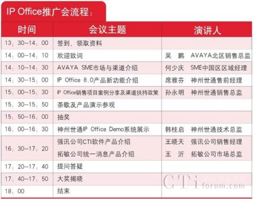 CTI論壇(ctiforum)3月6日消息(記者 潘婷婷): 2011年憑借廣泛的市場(chǎng)宣傳,Avaya IP Office以卓越的產(chǎn)品性能,突出的價(jià)格優(yōu)勢(shì)得到了廣大代理商的大力支持,取得了優(yōu)異的市場(chǎng)業(yè)績。為了與更多合作伙伴加強(qiáng)交流、密切合作,AVAYA 攜手神州世通,舉辦2012年Avaya IP Office產(chǎn)品渠道推廣大會(huì),屆時(shí)將邀請(qǐng)AVAYA領(lǐng)導(dǎo)、產(chǎn)品專家為大家講解 IP Offic 8.0新版本功能、分享經(jīng)典案例。同時(shí)神州世通將推出2012年代理商渠道扶持政策。