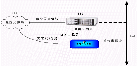 從程控端局送出來的信令和話路通過不同的PCM傳輸,信令鏈路接到七號信令網(wǎng)關轉(zhuǎn)換,通過消息方式傳遞到呼叫中心平臺,而話路則直接通過PCM線連接到電信平臺上進行話路連接。這種方式結構明晰,有利于系統(tǒng)管理,大大增強了系統(tǒng)容量的擴展能力。