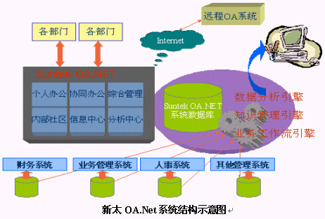 新太OA.NET系統(tǒng)采用B/S結(jié)構(gòu)設(shè)計(jì),系統(tǒng)以提供大量快速靈活的自定義功能以及許多核心平臺(tái)產(chǎn)品,如協(xié)同工作平臺(tái)、通訊平臺(tái)、知識(shí)管理平臺(tái)、信息服務(wù)平臺(tái)等,能夠幫助用戶快速實(shí)施信息化建設(shè),OA.NET系統(tǒng)的最大特色是實(shí)現(xiàn)"零代碼"維護(hù)功能,系統(tǒng)安裝后,無需編寫任何代碼就可生成各種辦公業(yè)務(wù)應(yīng)用,用戶只需幾個(gè)小時(shí)的培訓(xùn)就可以使用OA.Net提供的工具進(jìn)行復(fù)雜辦公流程的設(shè)計(jì),并且可以不需要經(jīng)過任何編碼的改動(dòng),就能輕松適應(yīng)流程變化的新情況。另外,OA.NET強(qiáng)調(diào)對(duì)企業(yè)內(nèi)部知識(shí)的有效管理和有效利用,能夠沉積企業(yè)日常的零散信息,并通過有序歸類的方式使之成為對(duì)企業(yè)有用的知識(shí)。OA.Net還提供了功能強(qiáng)大的個(gè)性化配置功能,每個(gè)員工都可以定制自己的界面風(fēng)格和功能模塊,并且可以自己建立個(gè)人的應(yīng)用環(huán)境,滿足個(gè)人的喜好。OA.Net包含了新太自主開發(fā)的業(yè)務(wù)工作流處理引擎,能夠在不用編寫代碼的情況集成其他業(yè)務(wù)系統(tǒng),實(shí)現(xiàn)了業(yè)務(wù)系統(tǒng)中的數(shù)據(jù)和辦公流程的完美結(jié)合,使得辦公應(yīng)用系統(tǒng)真正成為企業(yè)內(nèi)部的廣義化辦公門戶。
