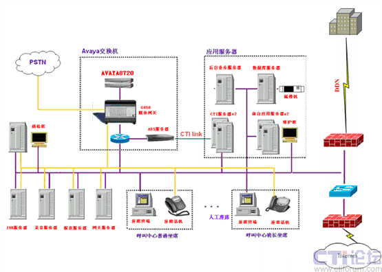 95190呼叫中心項(xiàng)目采用國際知名品牌AVAYA交換機(jī)作為系統(tǒng)接入處理,提供了包括數(shù)據(jù)庫服務(wù)器、文件服務(wù)器、CTI/IVR服務(wù)器、中間件服務(wù)器等相關(guān)后臺(tái)強(qiáng)有力的支撐服務(wù)設(shè)備,提供了三層網(wǎng)絡(luò)交換機(jī)、硬件防火墻等網(wǎng)絡(luò)設(shè)備等。整個(gè)系統(tǒng)達(dá)到960路中繼接入、180路人工座席、20路IP座席、360路IVR、15路傳真;支持7號信令、ISDN信令等信令協(xié)議;提供人工座席的實(shí)時(shí)同步錄音。