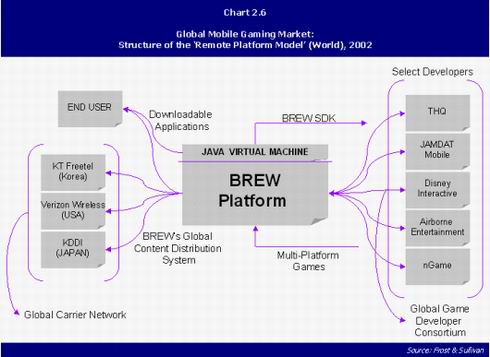 當(dāng)然,企業(yè)對(duì)未來的把握也往往和自己對(duì)這個(gè)行業(yè)的熟悉程度分不開的,所以微軟今天的策略大都帶有強(qiáng)烈的IT和互聯(lián)網(wǎng)的味道。而移動(dòng)市場(chǎng)當(dāng)中的新貴高通公司,就想當(dāng)年的微軟一樣,偶然性地掌握了CDMA的核心技術(shù),同時(shí)由于移動(dòng)通信在全球的興起,成了移動(dòng)通信價(jià)值鏈中的重要環(huán)節(jié)之一。但是,由于所有的競(jìng)爭(zhēng)廠家都希望自己擁有核心技術(shù),技術(shù)上略落后,但更開放的GSM得到了更多市場(chǎng)的青睞。為了保持自己的地位,高通采取了與微軟相似的地位,拋出了名為BREW的移動(dòng)應(yīng)用平臺(tái)。與微軟在寬帶和廣電的策略相同,高通在移動(dòng)通信領(lǐng)域提供從技術(shù)、服務(wù)到外包運(yùn)營(yíng)等全套解決方案。在移動(dòng)游戲領(lǐng)域,高通為美國(guó)第一大無線運(yùn)營(yíng)商Verizon搭建了基于BREW的游戲業(yè)務(wù)平臺(tái),同時(shí)負(fù)責(zé)這一平臺(tái)的運(yùn)圍和與游戲提供商的合作及管理、促銷等工作。與Verizon的合作是獨(dú)家的,建立在利潤(rùn)分成的基礎(chǔ)上,到現(xiàn)在為止,這種模式是移動(dòng)游戲領(lǐng)域最成功的合作之一。可以說,高通把自己變成了半個(gè)運(yùn)營(yíng)商,同時(shí)由于擁有客戶資源和合作模式提供,高通的地位有望超過Verizon。