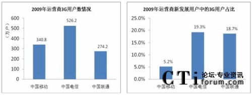 2009年中國聯(lián)通3G用戶中,手機(jī)用戶占比約為75%,這樣的3G用戶結(jié)構(gòu)較為合理;而中國電信3G用戶中手機(jī)用戶占比僅為20%左右,上網(wǎng)卡比例過大。
