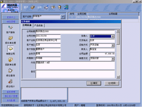 | 適合國內中小型企業(yè)應用的易達2000 CRM 2001-04-26 |