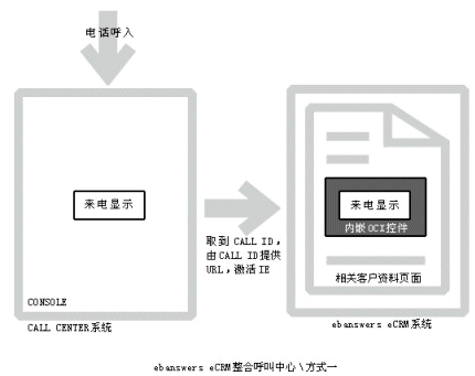 。。方式二:Ebanswers CRM系統(tǒng)內嵌的OCX控件能提供完善的呼叫中心功能,也就是說,不必經(jīng)過呼叫中心,電話可以直接呼入Ebanswers