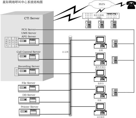 系統(tǒng)主要由座席卡、數(shù)據(jù)庫服務(wù)器等硬件設(shè)備和系統(tǒng)應(yīng)用軟件構(gòu)成。它以電話服務(wù)為主要方式、結(jié)合對計算機(jī)信息系統(tǒng)的資料數(shù)據(jù)的統(tǒng)計、分析、運用,為客戶提供全方位的服務(wù)。