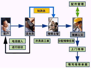 后臺(tái)客服應(yīng)用子系統(tǒng)建成后,客戶(hù)的投訴被自動(dòng)導(dǎo)入,生成投訴單和維修單,自動(dòng)轉(zhuǎn)發(fā)給維修部,安裝部等專(zhuān)業(yè)部門(mén)進(jìn)行處理,處理完后,系統(tǒng)會(huì)安排話(huà)務(wù)員進(jìn)行回訪,消費(fèi)者的處理意見(jiàn)和滿(mǎn)意度將被忠實(shí)地記錄下來(lái),進(jìn)一步充實(shí)到客服數(shù)據(jù)庫(kù)中以指導(dǎo)企業(yè)的生產(chǎn)研發(fā)。