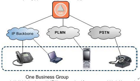 與終端的類(lèi)型和接入方式無(wú)關(guān)。企業(yè)或集團(tuán)用戶的成員可以使用不同類(lèi)型的終端, 通過(guò)不同的接入網(wǎng)絡(luò)接入到IMS。在IMS的控制下完成多媒體業(yè)務(wù)的通信過(guò)程,實(shí)現(xiàn)虛擬專(zhuān)用網(wǎng)絡(luò)的應(yīng)用。