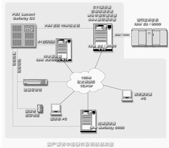 由銀證公司與IBM公司聯(lián)合開發(fā)的大規(guī)模銀行客戶服務(wù)中心系統(tǒng)。該系統(tǒng)基于朗訊DEFINITY程控交換機和IBM客戶服務(wù)系統(tǒng)開發(fā)平臺,開通200外線,120線電話銀行自動應(yīng)答,50線人工座席服務(wù)和12路傳真服務(wù)。