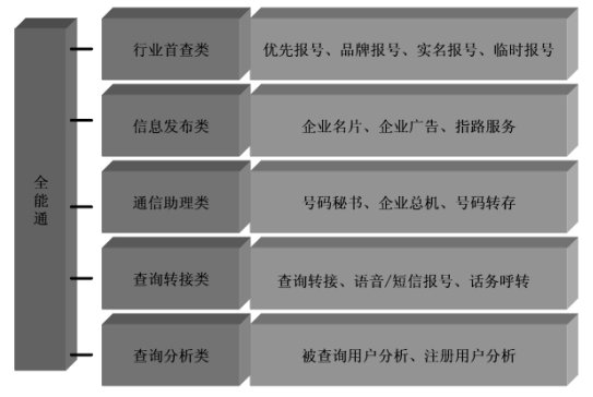 面向個人用戶提供簽約企業(yè)的行業(yè)推薦、品牌名稱、企業(yè)實名、企業(yè)臨時號碼等查詢方式,提高簽約企業(yè)的查詢率,使企業(yè)獲得更多的商機(jī)。包括以下五類子業(yè)務(wù):