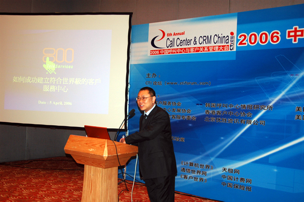 2006年4月3日至5日,2006中國(guó)呼叫中心與客戶(hù)關(guān)系管理大會(huì)在北京國(guó)際會(huì)議中心隆重召開(kāi),以下是飛翱商務(wù)咨詢(xún)有限公司主席及首席執(zhí)行官匯卓科技顧問(wèn)黃有權(quán)先生專(zhuān)題演講實(shí)錄: 原來(lái)大會(huì)希望我用一個(gè)比較技術(shù)性的角度看作為一個(gè)很好的呼叫中心,能發(fā)揮呼叫中心應(yīng)該有的水平,參加大會(huì)的朋友不一定技術(shù)背景強(qiáng)的,有可能來(lái)自IT背景,有可能是傾向于使用者,如果我這個(gè)呼叫中心發(fā)揮功能,在技術(shù)角度影響考量的點(diǎn),作為投資和匯報(bào)的平衡點(diǎn),今天演講主要是加重這方面的經(jīng)驗(yàn)分享。