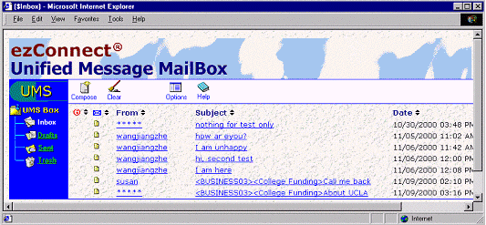 ezConnect的統(tǒng)一信息處理系統(tǒng)可以在同一個界面處理客戶交互請求,例如文字信息、網頁表格、電子郵件、語音郵件和傳真。從同一個UMS信箱,呼叫中心座席可以: