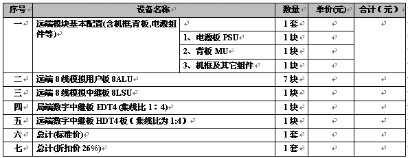 1.單套遠(yuǎn)端模塊主機(jī)(128門容量,帶主叫模擬用戶門,模擬中繼路)