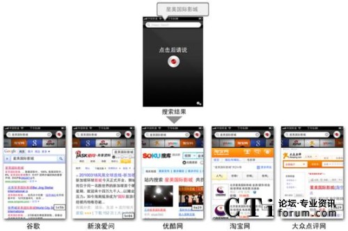 適用于iPhone™、iPad™和iPod touch™的聲龍搜索(Dragon Search)同時也在蘋果 App Store推出,為用戶提供強大的語音搜索功能。基于該產(chǎn)品,用戶只需說出自己的搜索要求,便可通過移動網(wǎng)絡找到相應的信息和答案。 另外,聲龍搜索(Dragon Search)創(chuàng)新的搜索功能界面(Dragon Search Carousel)還可以支持用戶同時訪問包括谷歌、新浪愛問、優(yōu)酷網(wǎng)、淘寶網(wǎng)和大眾點評網(wǎng)等多個熱門網(wǎng)站和搜索引擎,并在幾秒鐘內(nèi)獲得來自多個內(nèi)容來源的搜索結(jié)果。