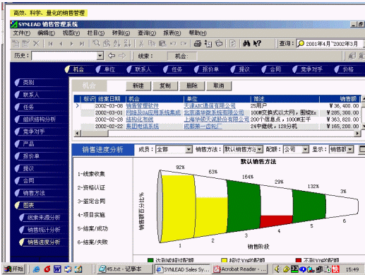 從99年由清華人創(chuàng)立的公司:致力于銷售型CRM軟件的開發(fā),公司有較為全面的CRM理念體系,繼承了MBA的營(yíng)銷經(jīng)營(yíng)思路,以及OA的流程化處理思想。