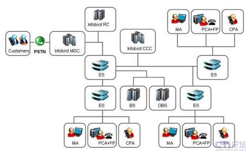 訊鳥于2007年初開始建設(shè)“啟通寶”呼叫中心平臺。該平臺的主體架構(gòu)由控制中心和媒體網(wǎng)關(guān)組成,其中在北京建設(shè)的控制中心類似于系統(tǒng)的“主大腦”,在上海、廣州等其他核心城市建設(shè)第二級的控制中心,類似于系統(tǒng)的“從大腦”?刂浦行牡墓δ苁枪芾砗涂刂疲c企業(yè)客戶相連接。媒體網(wǎng)關(guān)類似于系統(tǒng)的“手腳”,其功能是采取行動,進行PSTN和IP網(wǎng)語音的轉(zhuǎn)換等處理。另外,各控制中心負責所屬區(qū)域的業(yè)務(wù),同時互為備份。比如,北京的控制中心平時負責華北的業(yè)務(wù),上海負責華東的業(yè)務(wù),深圳負責華南的業(yè)務(wù),一旦某一分中心發(fā)生故障或呼叫量超過額定處理能力時,異地分中心便能接管或分擔該分中心的業(yè)務(wù)。