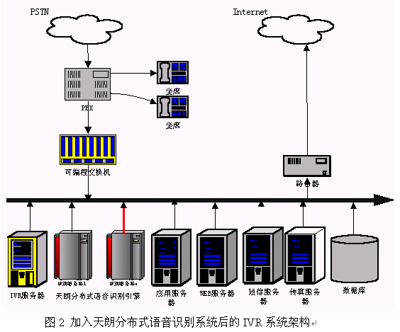 隨著語(yǔ)音識(shí)別的實(shí)用化進(jìn)程加快,人們?cè)絹?lái)越認(rèn)識(shí)到采用語(yǔ)音識(shí)別技術(shù)有利于極大的提高傳統(tǒng)按鍵方式IVR界面的友好性,提高服務(wù)的質(zhì)量。另外,采用語(yǔ)音識(shí)別技術(shù)可以把以前不可能實(shí)現(xiàn)的事情變得可行。因此,目前IVR行業(yè)越來(lái)越多的人認(rèn)識(shí)到語(yǔ)音識(shí)別技術(shù)的重要性,一些先行者已把語(yǔ)音識(shí)別技術(shù)集成到他們的系統(tǒng)中。那么,一個(gè)IVR廠商如何把天朗分布式語(yǔ)音識(shí)別系統(tǒng)集成到他們的IVR中呢?