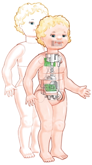 從機械上來說,夢想娃娃只是件簡單的藝術(shù)品。里面有三個馬達(dá):一個用來走路,一個用來成長,一個用來動嘴。爬行和走路是由古怪的凸輪完成的。凸輪向玩具的某邊傾斜的時候玩具另一邊的手和腳就會向前移動。然后凸輪又向另一邊傾斜,這邊的手腳又向前移動,這樣,玩具就能夠爬行和走路了。