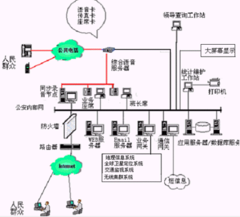 包括智能接警調度平臺,警用GIS地理信息系統(tǒng)/交通監(jiān)視系統(tǒng)/GPS全球衛(wèi)星定位系統(tǒng)/無線集群系統(tǒng),數(shù)字錄音系統(tǒng),圖象監(jiān)控系統(tǒng)和大屏幕顯示系統(tǒng)等。