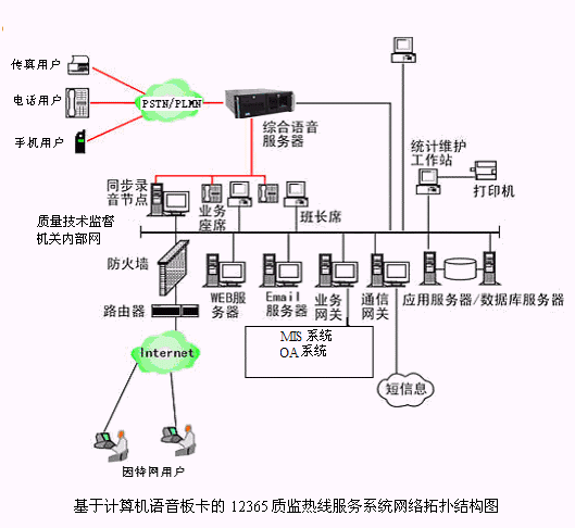 基于計(jì)算機(jī)語(yǔ)音板卡的12365質(zhì)監(jiān)熱線服務(wù)系統(tǒng)網(wǎng)絡(luò)拓?fù)浣Y(jié)構(gòu)圖