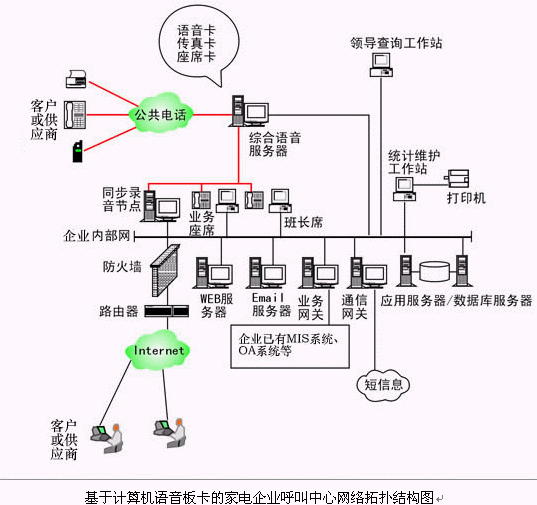 對(duì)于20個(gè)以下座席的中小型家電企業(yè)呼叫中心系統(tǒng),則建議使用基于計(jì)算機(jī)語音板卡的形式,可以減少家電企業(yè)投資,同時(shí)具有良好的系統(tǒng)性能;以確保合理的、較少的投入,獲取最佳的配置,滿足不同家電企業(yè)的需求。