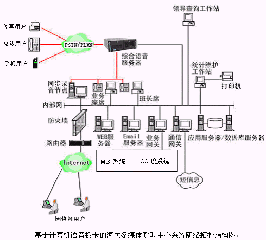 海關(guān)多媒體呼叫中心系統(tǒng)對外面向用戶,對內(nèi)與整個海關(guān)相聯(lián)系,與海關(guān)管理、服務(wù)結(jié)為一體,能夠把從用戶那里獲得的各種信息、數(shù)據(jù)全部貯存在龐大的數(shù)據(jù)倉庫中,供領(lǐng)導(dǎo)者作分析和決策之用;形成了對外服務(wù)于客戶,對內(nèi)管理、分析、決策系統(tǒng)相結(jié)合的多媒體呼叫中心。