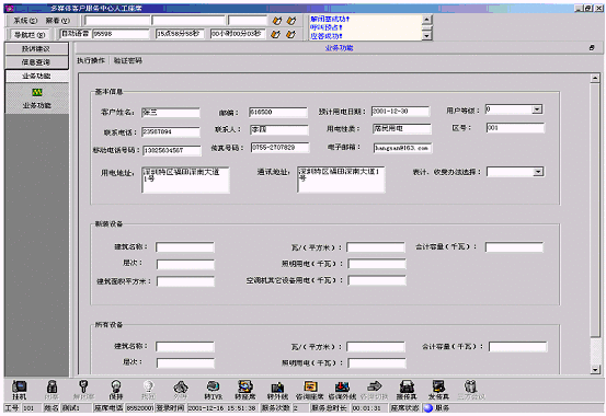 客戶信息包括客戶編號、客戶名稱、聯(lián)系電話、地址、所屬地區(qū)、地區(qū)編號、用戶人口數(shù)、樓層等多項,接聽客戶呼入電話,由座席代表記錄信息形成檔案,也可采用更為主動的呼出方式來確認(rèn)、核實、補充檔案。