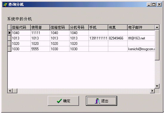 博宇科技自動總機(jī)語音信箱系統(tǒng)BYEVMS2.0產(chǎn)品維護(hù)程序用于電話分機(jī)管理、管理員工的語音信箱、Email管理等操作,部分界面如下: