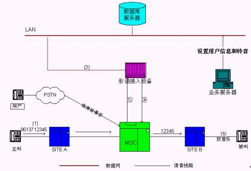 2. MSC接收到本呼叫后,把該呼叫路由到彩話接入服務(wù)器;