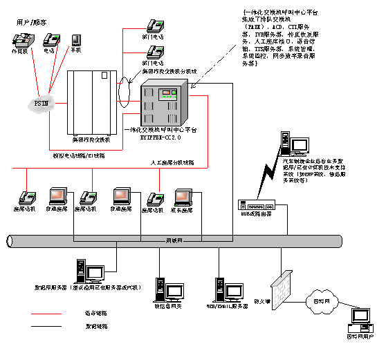 SERVER,從而構(gòu)成了軟硬件高度集成的一體化交換機呼叫中心平臺。