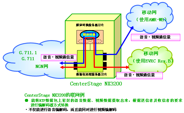 NX3200(以下簡稱「NX3200」)」上,內(nèi)置了行業(yè)首例運(yùn)營商級(jí)寬帶編解碼轉(zhuǎn)換功能。本裝置迅速對(duì)應(yīng)了ITU-T(注2)制定的國際標(biāo)準(zhǔn)G.711.1(注3)等寬帶編解碼器標(biāo)準(zhǔn),在運(yùn)用移動(dòng)網(wǎng)、固定網(wǎng)的各種語音編解碼器及視頻編解碼器之間,能同時(shí)進(jìn)行大容量通信。本產(chǎn)品即日起開始銷往市場(chǎng)。