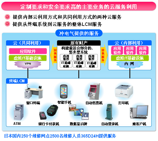 CTI論壇(ctiforum)12月9日消息(記者 楊佳林): 沖電氣開始銷售云計算服務(wù)(簡稱云服務(wù))—“EXaaS™”,以滿足客戶在任意時間以任意方式使用的需求!癊XaaS™”是整套的IT周期管理云服務(wù),包括系統(tǒng)引進(jìn)咨詢、開發(fā)、采購和構(gòu)筑、運營支持。該服務(wù)超越了以往的云服務(wù),其服務(wù)范圍涵蓋了客戶端的終端機(jī)以及客戶網(wǎng)絡(luò)的所有部分,實現(xiàn)了客戶IT投資成本最優(yōu)化。