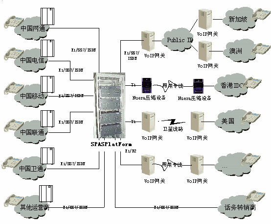 深圳斯普瑞特公司在積累多年電信業(yè)務(wù)應(yīng)用產(chǎn)品開發(fā)的基礎(chǔ)上,根據(jù)新興運營商的特點專門構(gòu)造了一個電信運營綜合業(yè)務(wù)平臺(SPASPlatForm平臺)。該業(yè)務(wù)平臺采用世界上最先進的開放式的設(shè)計思路,既可配合各類型的板卡和傳統(tǒng)交換使用,又可配合先進的開放式可編程交換平臺使用,還可適應(yīng)下一代網(wǎng)絡(luò)(如:軟交換)。該業(yè)務(wù)平臺軟件采用模塊化設(shè)計,可根據(jù)用戶的需要在同一平臺上實現(xiàn)多種業(yè)務(wù),包括:話務(wù)轉(zhuǎn)售;預(yù)付費電話卡;后付費電話;電話呼叫跟隨轉(zhuǎn)移;會議電話等,還可根據(jù)需要生成其他新的業(yè)務(wù)。