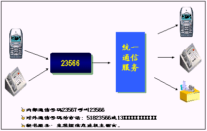 鐵路內(nèi)部員工可以統(tǒng)一所有的通信工具,只使用一個(gè)號(hào)碼,一次呼叫便可以完成通信,使通信更加簡(jiǎn)單、可靠?梢詫(shí)現(xiàn)換機(jī)換網(wǎng)不換號(hào),用戶獲得一個(gè)終身的聯(lián)系號(hào)碼,用戶無(wú)論更換任何通信工具,聯(lián)系號(hào)碼和方式不會(huì)改變。例如:在路局領(lǐng)導(dǎo)找下屬的時(shí)候,只需要撥打他的統(tǒng)一號(hào)碼,便可以直接找到他。不必考慮他是否在外出還是在辦公室,是否更換了手機(jī)號(hào)碼。統(tǒng)一號(hào)碼就像他員工號(hào)碼,始終不變,即撥即通!
