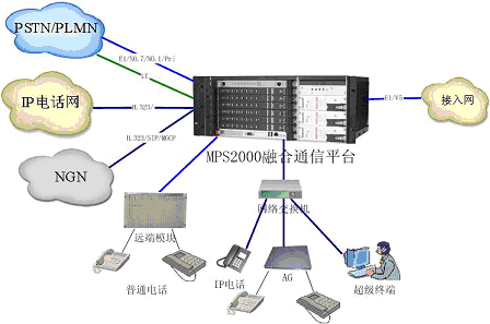 MPS2000融合通信平臺接入手段豐富,能夠提供V5協(xié)議與接入網(wǎng)相連,同時平臺能夠通過其遠(yuǎn)端模塊接入普通電話,通過AG(接入網(wǎng)關(guān))接入普通電話,通過內(nèi)部數(shù)據(jù)網(wǎng)接入IP電話以及軟電話終端(超級終端)。豐富的終端接入充分保證了用戶能夠在各種情況下的語音通信需求。目前,該套設(shè)備已經(jīng)在浙江移動投入使用,不久就可提供給全國各地的運(yùn)營商及大中企事業(yè)單位。