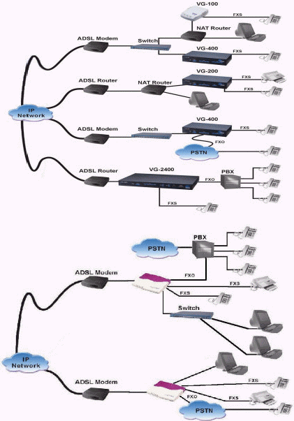 VG400語(yǔ)音網(wǎng)關(guān)產(chǎn)品的企業(yè)網(wǎng)IP電話編號(hào)與呼叫的優(yōu)越性在于保護(hù)了現(xiàn)有傳統(tǒng)設(shè)備如電話機(jī)、傳真機(jī)、PBX、KTS(鍵控電話系統(tǒng))等的投資,建立了這些傳統(tǒng)設(shè)備與IP網(wǎng)之間的橋梁。