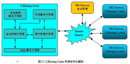 由于采用基于WEB的客戶端,Q.Meeting Center的部署是比較簡單的。只需按Q.Meeting Server的運行環(huán)境要求安裝配置好會議服務(wù)器即可。主持人和其他與會者使用普通PC機通過WEB瀏覽器訪問會議URL地址即可參加會議。