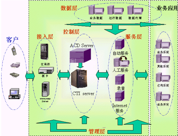根據建設呼叫中心的不同需求,提供基于板卡、交換機通用呼叫中心,以及Internet呼叫中心三種方案。