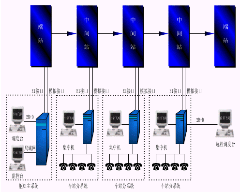 北京佳訊飛鴻通信技術有限公司在充分調(diào)研的基礎上,推出了飛鴻98鐵路數(shù)字專用通信系統(tǒng),以一套數(shù)字化的設備替代原有模擬調(diào)度系統(tǒng)、專用電話系統(tǒng)、集中機和區(qū)轉(zhuǎn)機等多種模擬設備,實現(xiàn)鐵路專用通信的所有基本功能,同時利用數(shù)字化的傳輸通道和數(shù)字化的技術,實現(xiàn)整個調(diào)度區(qū)間內(nèi)所有設備的集中監(jiān)控、遠程維護、故障診斷、環(huán)境動力監(jiān)測等等維護管理功能,大大方便了維護檢修工作,使其維修方式可由過去的預防修模式轉(zhuǎn)變?yōu)楝F(xiàn)代的狀態(tài)修方式,可在不中斷通信的情況下對系統(tǒng)進行維護,極大的提高了系統(tǒng)的安全可靠性。同時系統(tǒng)兼容原有模擬調(diào)度實回線,沒有數(shù)字通道的車站也可通過模擬實回線接入系統(tǒng)。