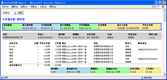 例如,在SynleadCRM"合同"工作界面,過濾出所需的定單記錄集,可生成以下復雜報表